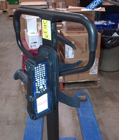 This mounting pad can be attached to the frame of a lift truck allowing the driver to attach their device securely. This allows the handheld mobile computer/ scanner to be easily accessible at all times.